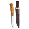 Companion Spark is Moraknivs‘ latest sparkling novelty – designed to light the spark to your outdoor adventure. With a high-quality fire starter integrated into the handle, the heat from a campfire is always close at hand.Sprung from Companion, one of our most popular knives, Spark is a reliable companion that performs great in any weather condition. The durable blade is made of Swedish stainless steel, which makes it easy to maintain and with better edge retention. It has a soft friction grip handle made of TPE rubber, which makes the grip safer and more steady to work with. The polymer knife sheath has a practical belt clip for attaching the knife to a rucksack or a belt. Companion Spark is also equipped with a reflective paracord for the fire starter which reduces the risk of misplacing it.Fire Steel Compatible – this knife has a ground spine. The blade hasn’t been polished/buffed and the spine corners are sharp, which make knives with this grinding excellent for use with a fire starter. The adventure awaits!SpecificationsUsage Area: Bushcraft, Hunting, OutdoorKnife Type: All-roundKnife Series: CompanionSteel Type: Stainless SteelBlade Shape: StraightBlade Length: 104 mmBlade Thickness: 2,5 mmFire Steel Compatible: YesSerrated Edge: NoSerrated Spine: NoBlunt Tip: NoFlex Grade: StiffEdge Protection: Polymer SheathSheath Orientation: RightMOLLE-compatible: NoKnife Length: 223 mmHandle Material: TPE-rubberHandedness: Left Handed, Right HandedFit for Children: NoFloating: NoTotal Length: 238 mmNet Weight: 128,0 g