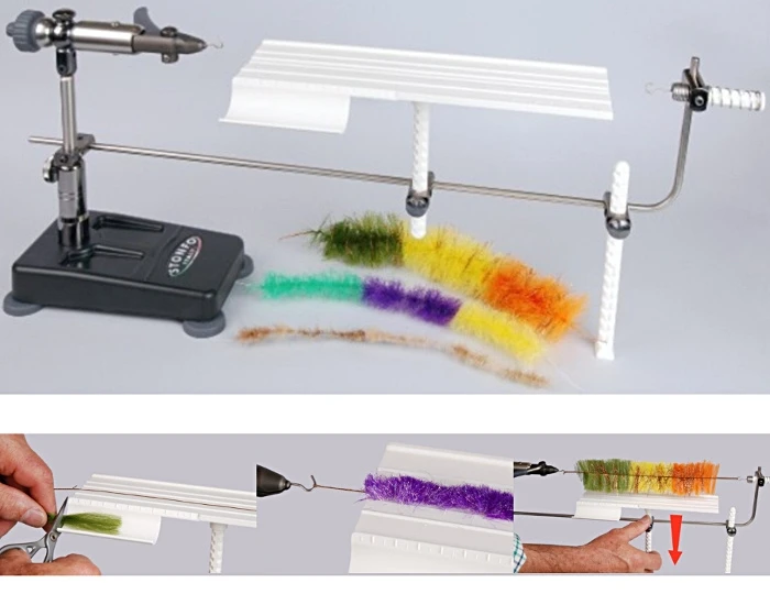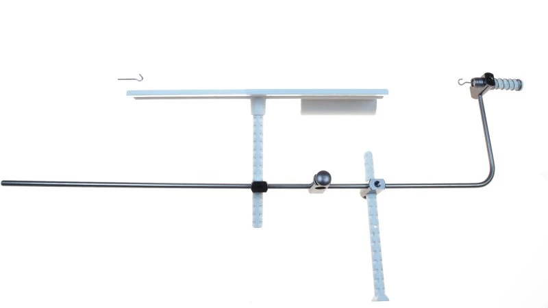 Der Tisch, stabil und höhenverstellbar, ermöglicht ein einfaches Aufbringen von verschiedenen Materialarten auf den Metalldraht. Eine spezielle Nische ermöglicht einen präzisen Schnitt dieser Materialien auf die gewünschte Länge.